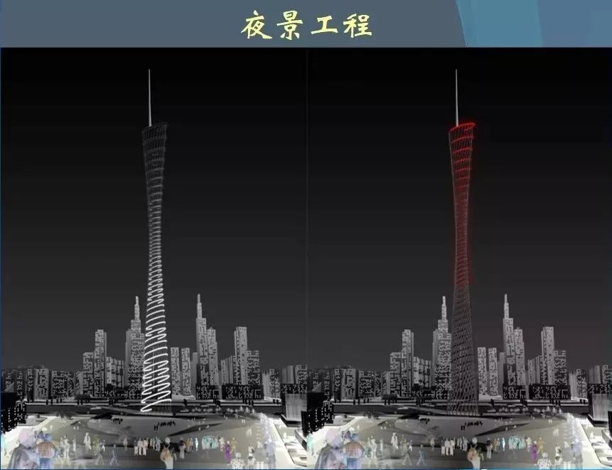 廣州塔塔身整體采用大量的網(wǎng)狀的漏風空洞并設置特質(zhì)透明玻璃漏出窗景由上小下大的兩個橢圓體扭轉(zhuǎn)而成,外部鋼結構體系由24根立柱、斜撐和圓環(huán)交叉構成。
