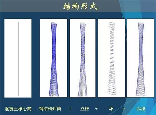 廣州塔外部鋼結構體系由24根立柱、斜撐和圓環(huán)交叉構成,各立柱間隔相當,環(huán)形排列。