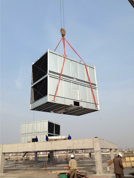 惠州東江環(huán)保橫流方形冷卻塔安裝 廣東特菱空調(diào)(http://m.shmingyuan.com)方形橫流式玻璃鋼冷卻塔結(jié)構(gòu)特點(diǎn): (1)擋板:玻璃鋼材質(zhì),表面光滑美觀,耐腐蝕,防老化。 (2)填料:改性聚氯