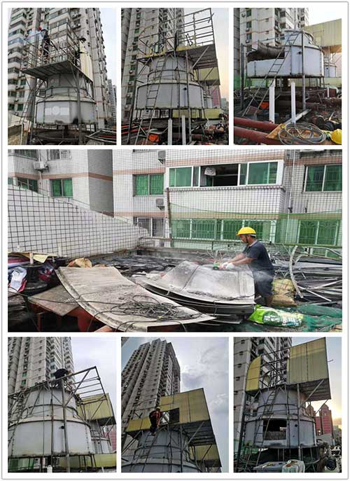 我們第一時間對冷卻塔進行破壞性拆除并清理現場